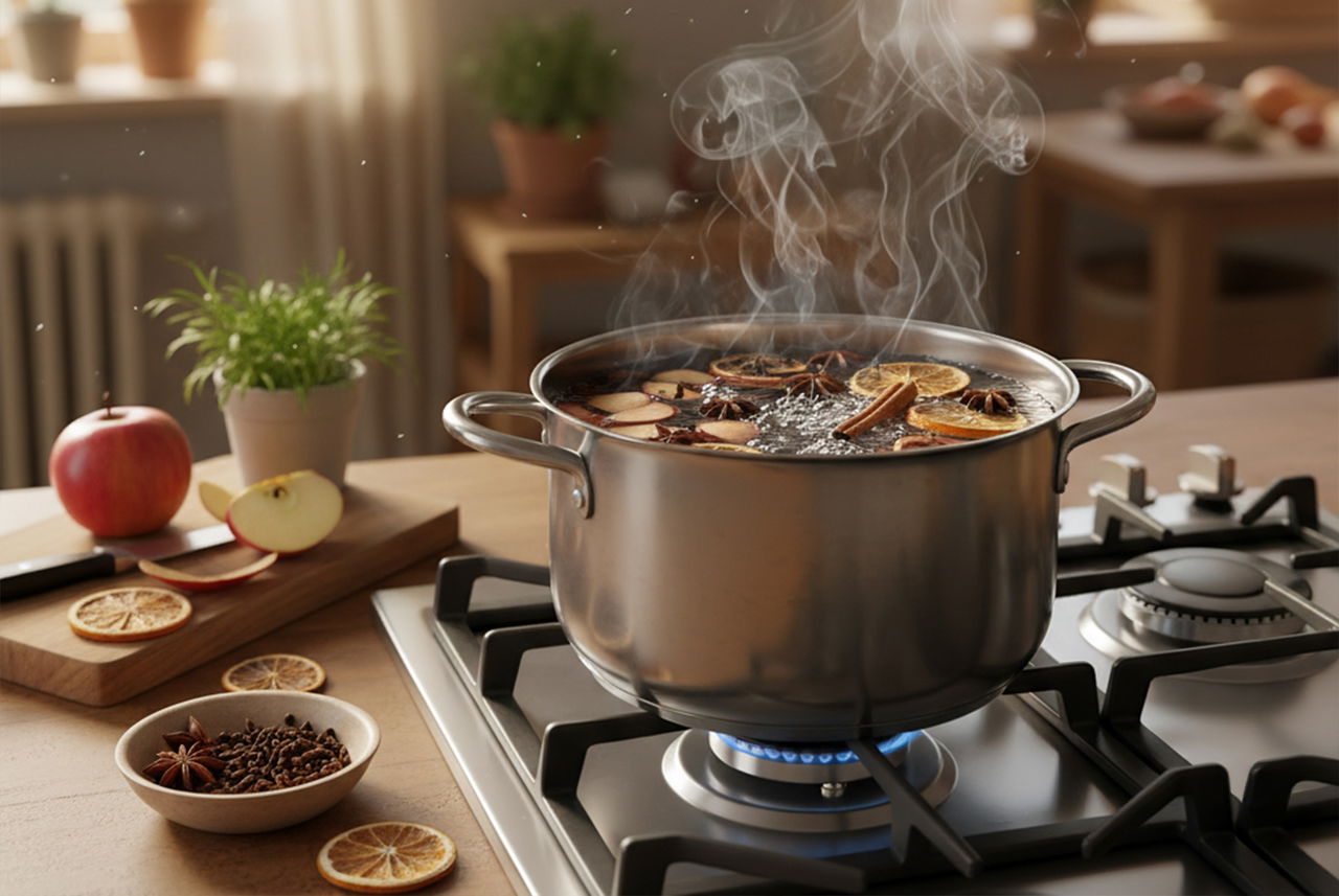 lasciare sul fornello una pentola con acqua, scorze di mela e spezie: un profumo naturale che invade la casa.