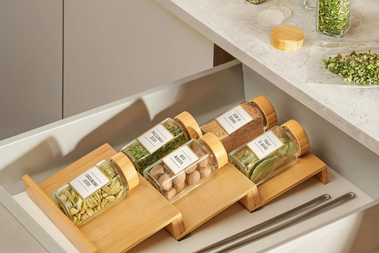 Anche la dispensa cambia: organizzo spezie, farine, legumi e cereali in contenitori ermetici in vetro o bambù, belli da vedere e comodi da usare. Così cucinare diventa un gesto più fluido, più intuitivo, più mio.