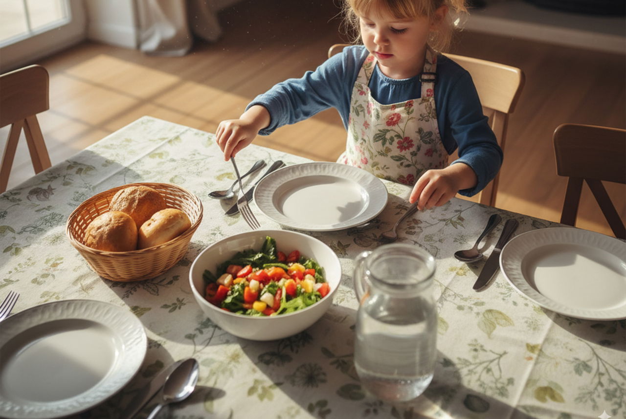 Anche la mise en place può diventare una routine dolce: coinvolgere i bambini a preparare il tavolo li aiuta a sentirsi parte della casa… e a educarli alla bellezza del prendersi cura degli altri.