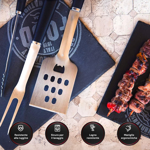 Set 3 Utensili Barbecue in Acciaio Satinato: Pinze, Spatola, ForchettaPromettiamo che non invieremo spam. Riceverai solo notifiche per questo prodotto.