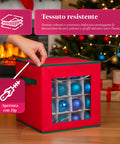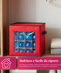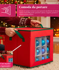 Organizer per 64 Palline di Natale in TNT con Finestra Frontale e Scomparti Modulari – 30x30x30 cm