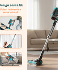 - Design cordless e maneggevole: La struttura senza fili permette la massima libertà di movimento durante l’uso, rendendola perfetta per ogni ambiente della casa, dal soggiorno alla camera da letto, fino alle scale.