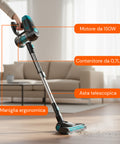 Grazie alla batteria a lunga durata e al filtro HEPA integrato, questa scopa elettrica è ideale non solo per la pulizia rapida, ma anche per mantenere l'aria di casa più pulita e respirabile. Il tubo telescopico regolabile garantisce una postura corretta durante l’utilizzo, riducendo l’affaticamento.