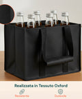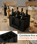 - Capacità: ogni borsa può contenere fino a 6 bottiglie da 1,5 L.