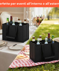 Scegli il Set 3 Borse Porta Bottiglie con 6 Scomparti e trasporta le tue bevande preferite in modo ordinato, sicuro e con un tocco di eleganza.