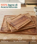 Scegli il Set 4 Taglieri in Acacia – la combinazione perfetta di eleganza, resistenza e funzionalità per la tua cucina.