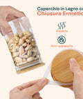 - Coperchio in legno con chiusura ermetica: Conservazione ottimale degli alimenti grazie alla guarnizione interna.