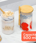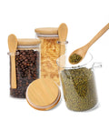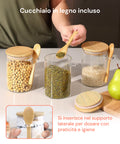 Set 3 Barattoli Vetro 500ml con Coperchio Ermetico in Legno e Cucchiaio