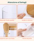 - Cucchiaio in legno incluso: Inserito nel supporto laterale del barattolo per un dosaggio pratico e igienico.