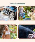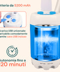 - Doccia portatile elettrica: alimentata da una batteria integrata ricaricabile da 5200 mAh, garantisce fino a 120 minuti di autonomia continua per molteplici usi senza necessità di corrente.