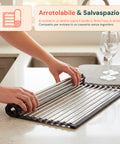 Scolapiatti da Lavandino in Acciaio Inox – Arrotolabile e Salvaspazio 43x35 cm