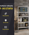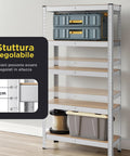 Scaffale in Metallo con 4-5 Ripiani Regolabili in MDF