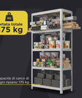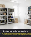 - Dimensioni Scaffale 4 Ripiani 150x75x30 cm e Scaffale 5 Ripiani 180x90x40 cm: Spazio ottimale per riporre materiali di vario tipo senza ingombrare l’ambiente.