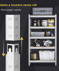 - 4-5 ripiani regolabili: Personalizzabili in altezza per adattarsi a oggetti piccoli o voluminosi.