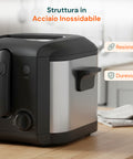 Scegli la Friggitrice Elettrica in Acciaio Inox con Filtro Anti-Odori per portare in tavola piatti croccanti e gustosi in tutta sicurezza e comodità.
