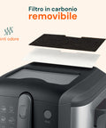 - Filtro in carbonio antiodore: Filtro removibile che assorbe gli odori durante la frittura, mantenendo l’ambiente più pulito e gradevole.