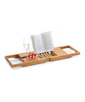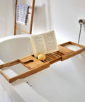 Vassoio Vasca da Bagno in Bambù Estensibile con Porta Calici e Leggio