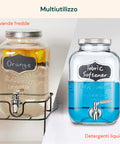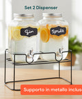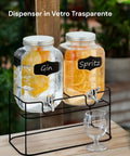 Servi bevande fredde e dissetanti con stile grazie al Set di 2 Dispenser in Vetro da 4 Litri con rubinetto in acciaio inox e supporto in metallo. Perfetti per succhi, infusi, acqua aromatizzata, cocktail o detersivi liquidi, questi dispenser uniscono funzionalità, robustezza e design elegante. Ideali per feste, buffet, eventi o per l’uso quotidiano in cucina.