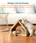 Scegli il Tiragraffi Casa per Gatti con Rifugio e Superficie in Cartone e regala al tuo micio uno spazio tutto suo dove giocare, graffiare e riposare in totale comfort.