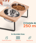 - 2 ciotole in acciaio inox da 250 ml: Resistenti, igieniche e facilmente removibili per la pulizia.