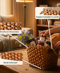 - Manici in corda: Resistenti e comodi, permettono di trasportare facilmente il cesto anche a pieno carico.
