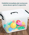Con una capacità di 85L, questo contenitore offre una soluzione di archiviazione ideale per oggetti ingombranti e pesanti, permettendo di mantenerli ben organizzati e protetti. La plastica trasparente consente di vedere facilmente cosa c'è all'interno senza dover aprire il contenitore. Il coperchio offre una protezione aggiuntiva contro polvere e altre impurità, mantenendo gli oggetti al sicuro. Le ruote permettono di spostarlo senza difficoltà, rendendo facile il trasporto anche quando è pieno. Grazie alla compatibilità con gli altri contenitori della linea C Box, è possibile creare un sistema di archiviazione su misura che soddisfi ogni esigenza.