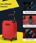 - Valigia trolley con manico telescopico: facile da trasportare grazie alle ruote scorrevoli e al manico regolabile in altezza.