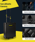- Valigia trolley con manico telescopico: facile da trasportare grazie alle ruote scorrevoli e al manico regolabile in altezza.
