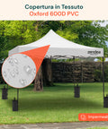 • Copertura impermeabile: Tetto in tessuto Oxford 600D PVC resistente agli agenti atmosferici.