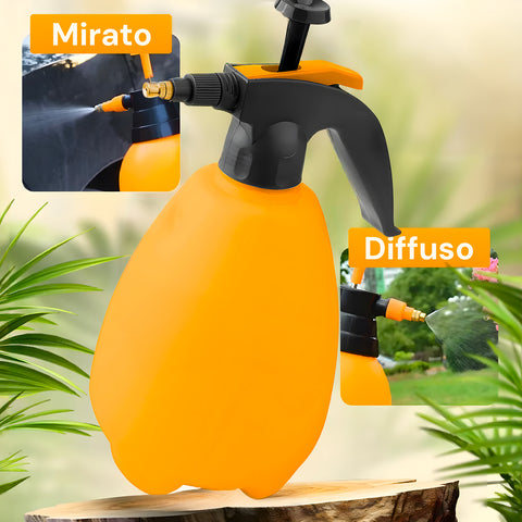 Pompa da giardino con ugello regolabile per getto pieno e nebulizzatore, irrorazione precisa su lavanda e piante aromatiche