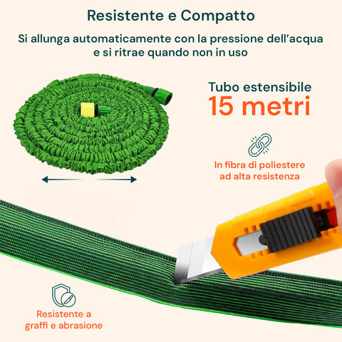 Mahuka Tubo Estensibile Da Giardino 15m Con Pis...