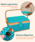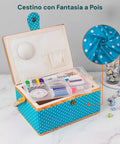Set Cucito Completo con Cestino a Pois e Scomparti Organizzati