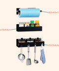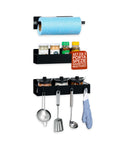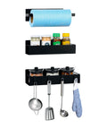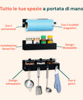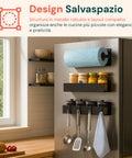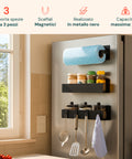 Porta Spezie Magnetico da Frigorifero in Metallo Nero con Ganci e Porta Rotolo