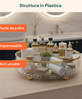 - Struttura in plastica resistente: realizzati in materiale robusto e durevole, progettati per sostenere il peso di bottiglie, barattoli o prodotti di bellezza.