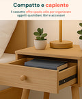 - Cassetto singolo spazioso: Ideale per riporre oggetti personali, accessori o documenti.