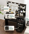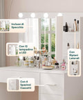 Postazione Trucco Completa con Specchio Luminoso LED e 4 Cassetti