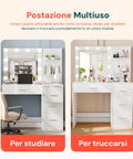 Scegli la Postazione Trucco Completa con Specchio Luminoso e Cassetti per trasformare il tuo momento beauty quotidiano in un rituale comodo, ordinato e professionale.