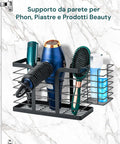 Supporto Asciugacapelli Mensola da Parete Senza Fori per Piastre e Spazzole