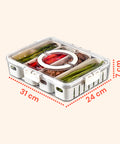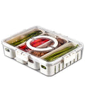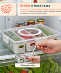 Organizza i tuoi spazi con praticità e stile grazie al Contenitore Multiuso a 4 Scomparti realizzato in materiale PP resistente. Progettato per offrire una soluzione compatta e funzionale, questo contenitore è perfetto per riporre alimenti, accessori, minuterie, cosmetici o piccoli utensili, mantenendo tutto in ordine e facilmente accessibile. Il suo sistema ad incastro permette di impilare più contenitori in modo stabile e sicuro, ottimizzando lo spazio in cucina, in ufficio o nella dispensa. Dotato di una chiusura a clip ermetica, il contenitore assicura una perfetta tenuta, proteggendo il contenuto da polvere, umidità e contaminazioni esterne. La sua funzione sgocciolatoio lo rende ideale anche per conservare alimenti freschi o lavati, permettendo all’acqua di defluire facilmente e mantenendo i cibi asciutti e croccanti. Realizzato in PP (polipropilene) di alta qualità, è sicuro, leggero e resistente agli urti, garantendo una lunga durata anche con un uso quotidiano intensivo.
