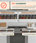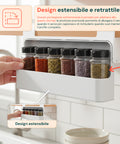 Set 2 Mensole Estensibili Portaspezie con 6 Barattoli in Vetro Inclusi