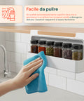 Le Mensole Portaspezie Estensibili sono la soluzione ideale per mantenere ordine e praticità in cucina. Con i barattoli in vetro inclusi puoi conservare e visualizzare facilmente le tue spezie preferite, mantenendole sempre fresche. Il sistema adesivo con ganci garantisce un fissaggio sicuro in pochi secondi, senza bisogno di viti o trapano.