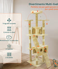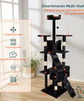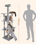 Tiragraffi con Cuccia 170 cm Multilivello per Gatti con Piani e Giochi