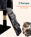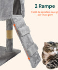 - Multilivello: Dotato di più piattaforme, tunnel, rampe e cuccette per rispondere a tutte le esigenze del gatto.