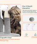 Con il Tiragraffi con Cuccia 170 cm, offri ai tuoi gatti un ambiente completo per giocare, esplorare e rilassarsi ogni giorno, ideale per soddisfare i loro bisogni naturali in modo sicuro e confortevole. Dotato di diversi piani, piattaforme panoramiche, colonne rivestite in sisal, nicchie e una comoda cuccia, questo albero tiragraffi stimola l’attività fisica e mentale del tuo felino, aiutandolo a tenersi attivo e a evitare danni all’arredamento. La struttura stabile e alta 170 cm è perfetta per arrampicate e momenti di osservazione, mentre i materiali morbidi e resistenti garantiscono comfort e durata nel tempo. Ideale per ambienti domestici di ogni tipo, rappresenta una soluzione funzionale e decorativa per offrire al tuo gatto un vero e proprio spazio personale all’interno della casa.