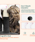 - Tiragraffi con cuccia altezza 170 cm: Struttura ampia e verticale per arrampicata, relax e osservazione.