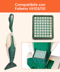 Proteggi il tuo Folletto e migliora l’aria in casa: scegli questo filtro igienico compatibile VK130 VK131 per una pulizia profonda e sicura. Acquista ora e approfitta della consegna rapida e dell’assistenza dedicata!