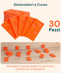 - 30 distanziatori a cuneo: Mantengono il giusto spazio tra pavimento e parete per la dilatazione.