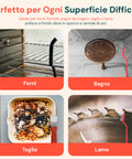 - 2 raschietti robusti: Utili per rimuovere residui di cibo, calcare e incrostazioni da vetri, piastrelle, superfici lisce e piani cottura. Dotati di impugnatura ergonomica per un controllo sicuro.