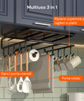 Mensola Sottopensile Multiuso con Ganci Portautensili e Porta Rotolo – Organizer Salvaspazio per Cucina