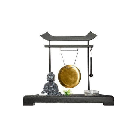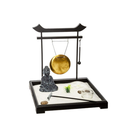 Giardino Zen su Vassoio in Legno con Gong e Buddha 26x26cm
